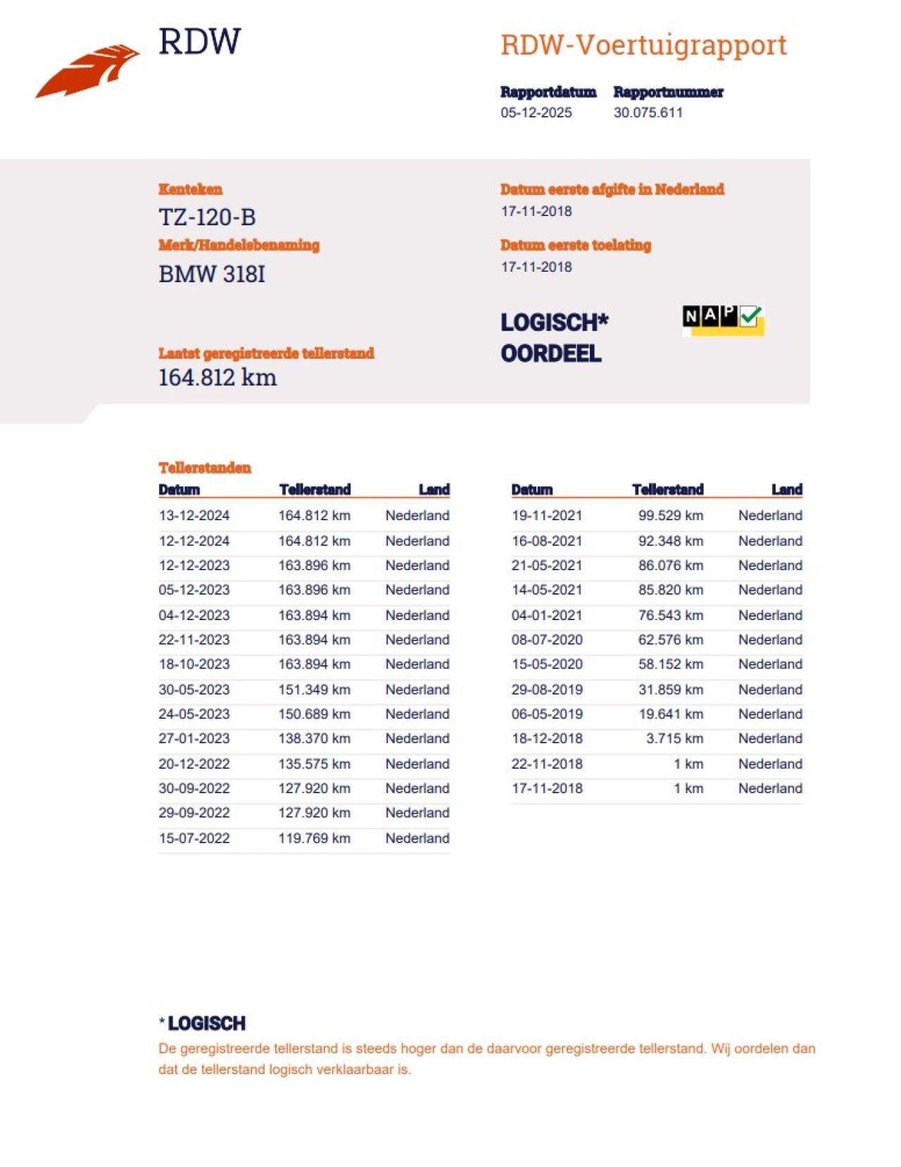 Kilometerstand: 164.812 KM