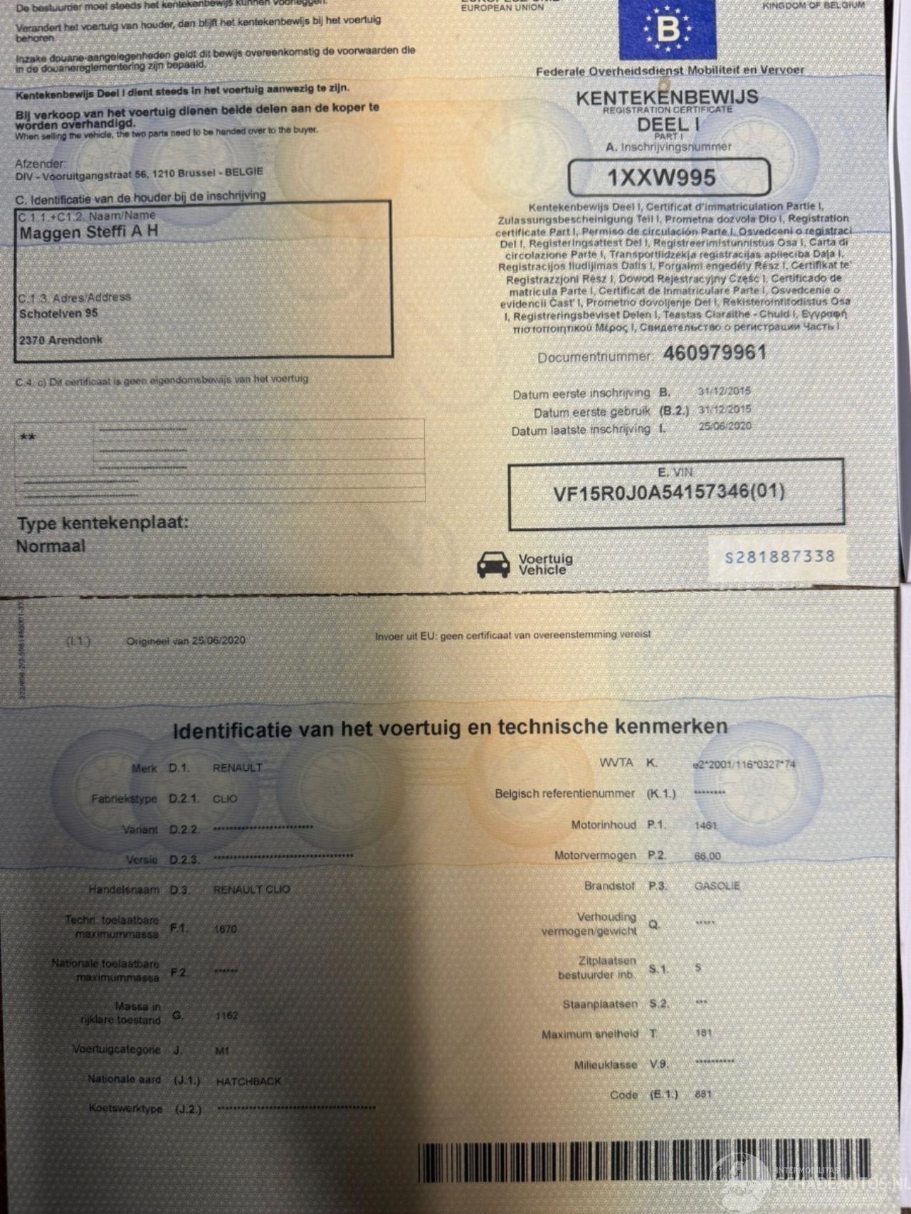 Chassisnummer: VF15R0J0A5415****
