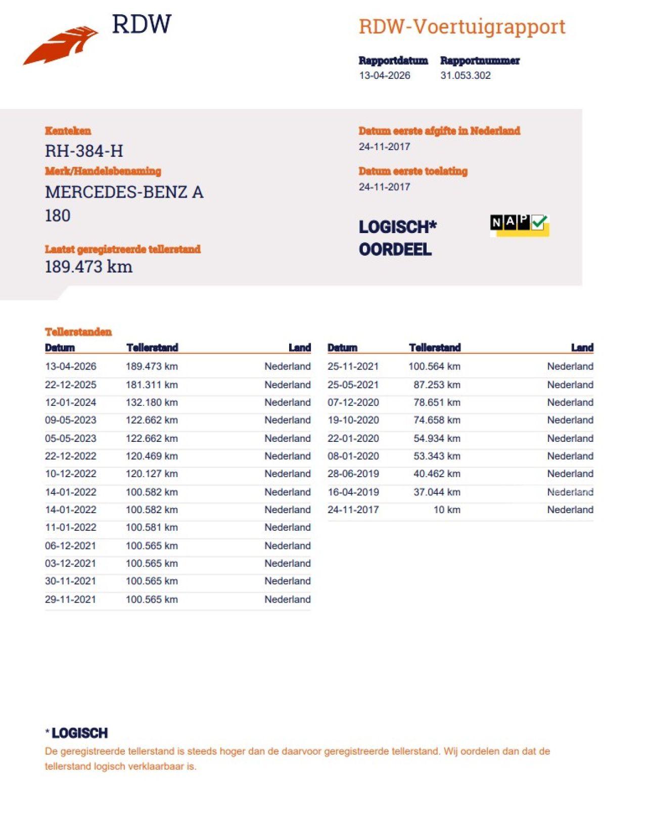 Verificación del kilometraje (NAP)