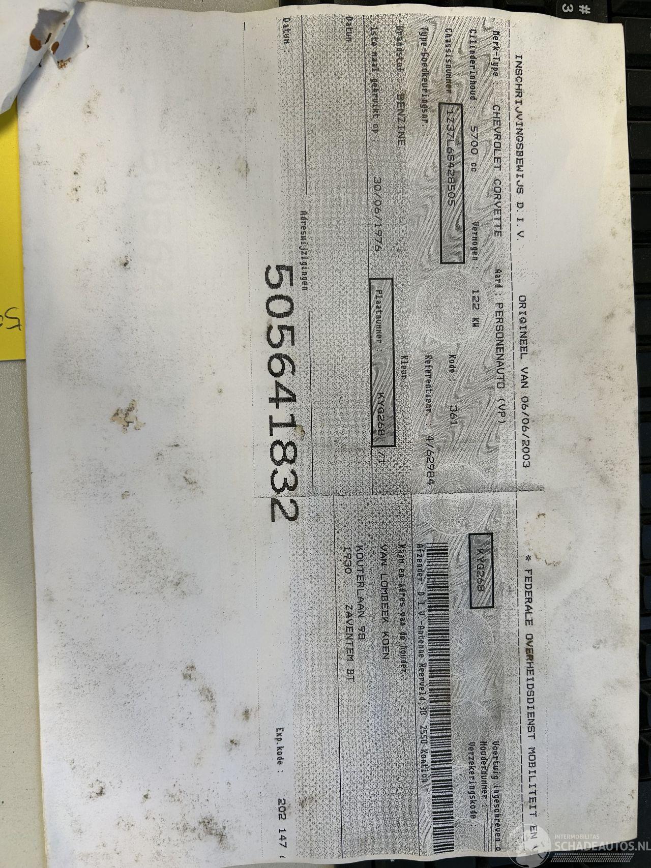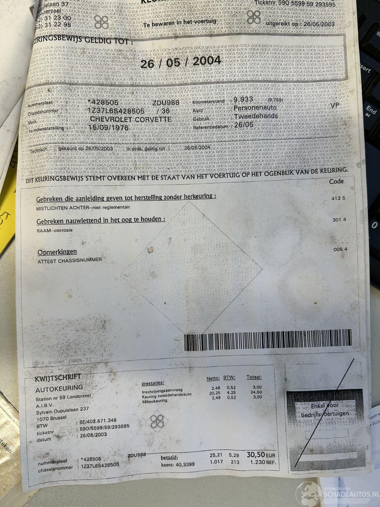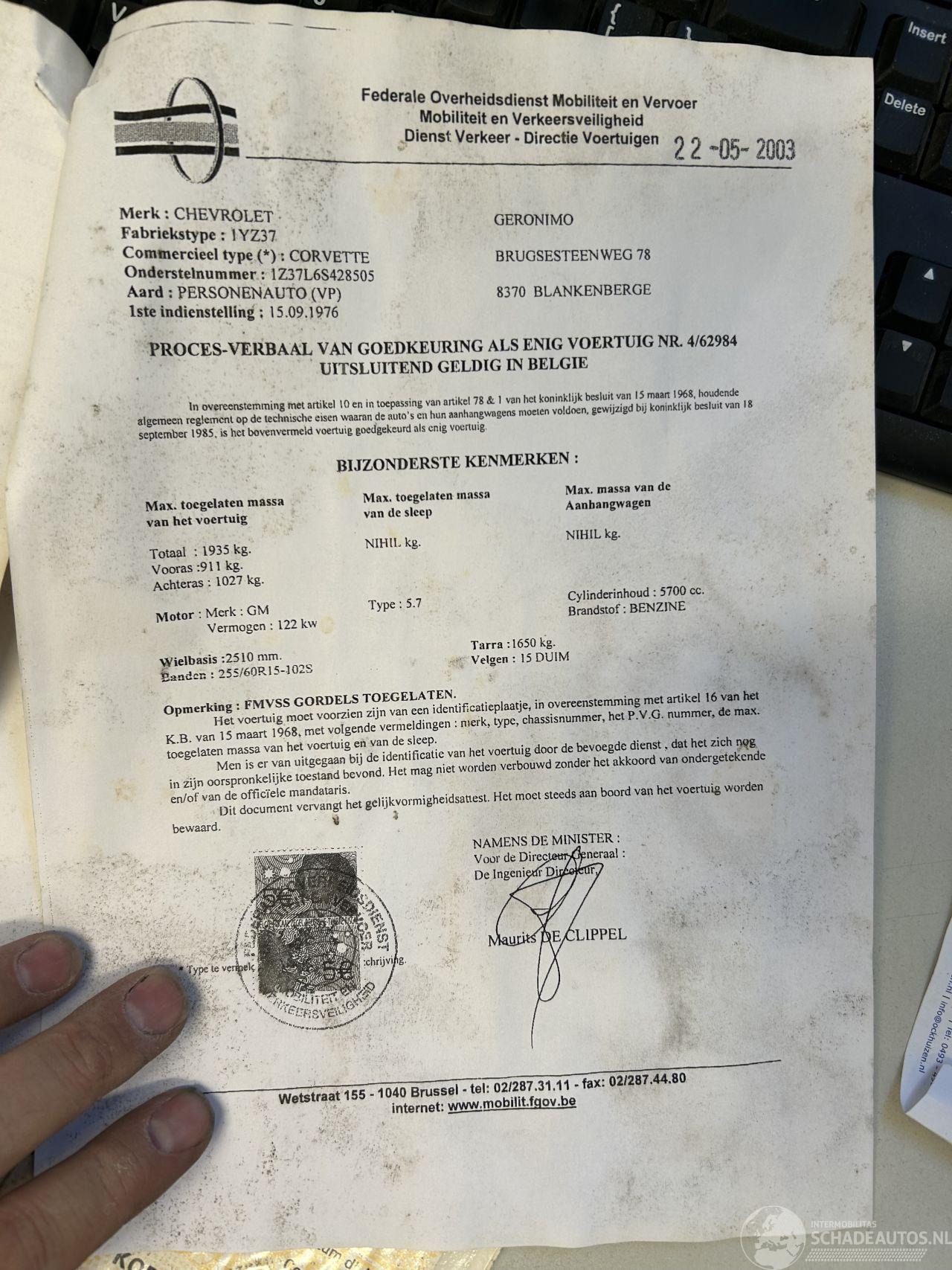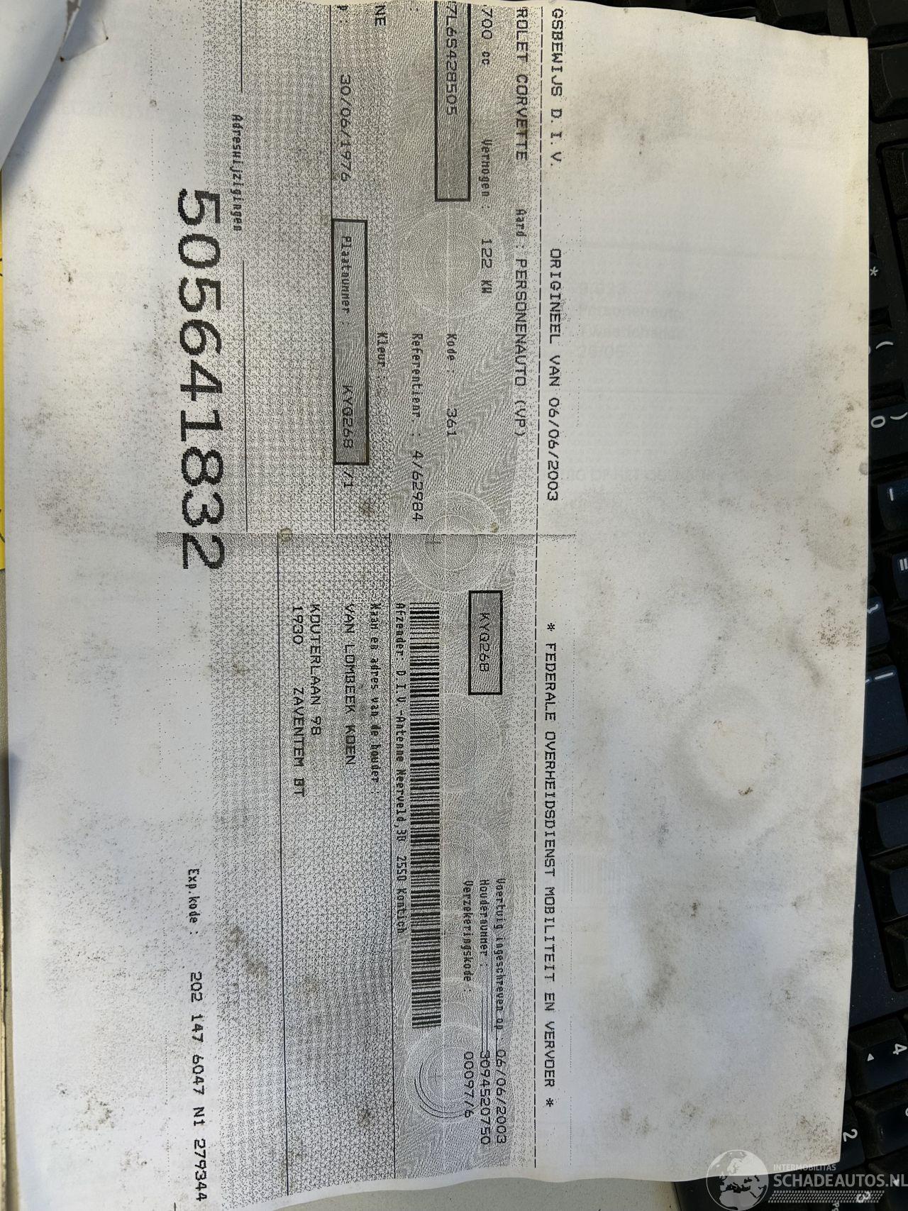 dommages CHEVROLET CHEVROLET CORVETTE € 7.450